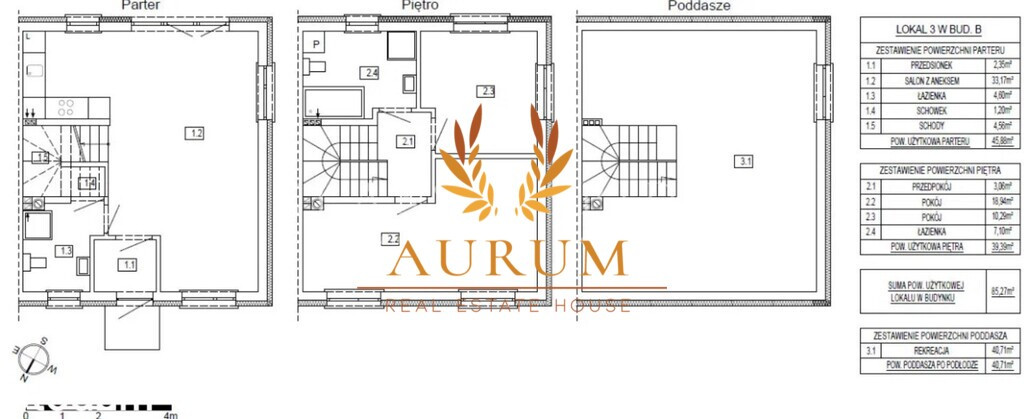 Powierzchnia użytkowa: 84,37 m² + poddasze 41,18 m² (łącznie ~125 m²)