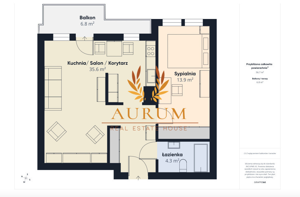 - Powierzchnia: 56,7 m2