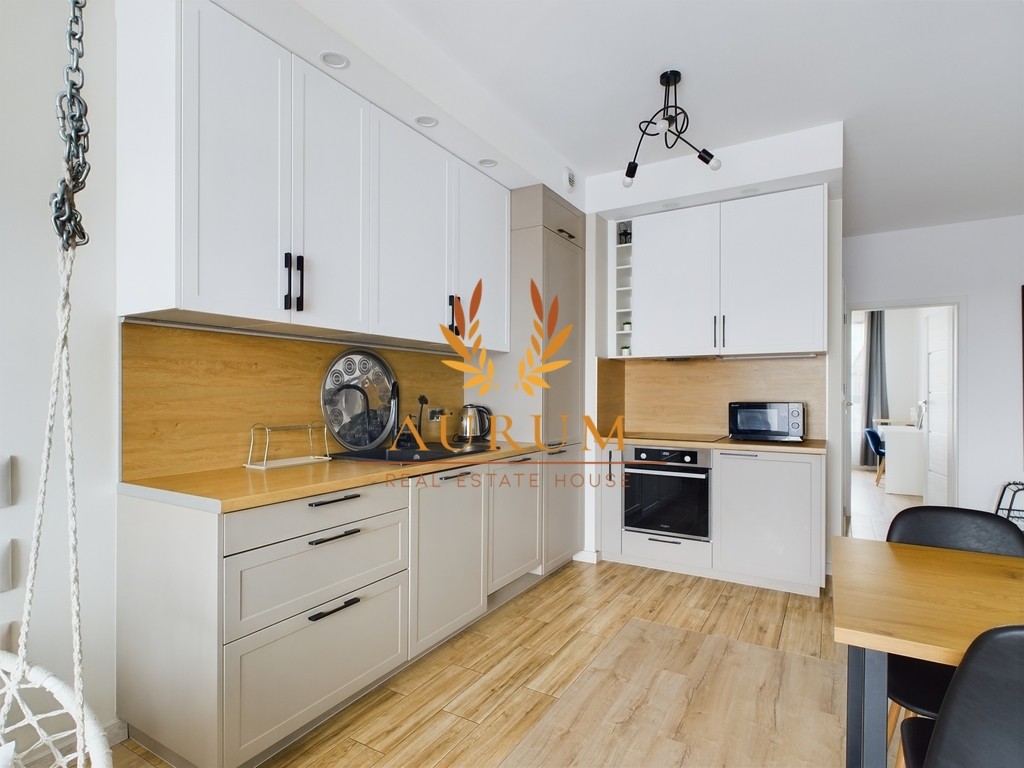 - SALON: rozkładana sofa, stolik kawowy, szafka RTV, Wi-Fi, telewizor, stół jadalniany z czterema krzesłami, huśtawka, fotel, wyjście na balkon, a także aneks kuchenny z pełnym wyposażeniem - płyta indukcyjna, piekarnik, czajnik, lodówka z zamrażarką, zmywarka